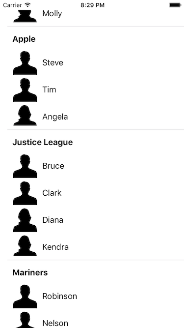 With that in mind, let’s see how it works together. The sample code can be found on Github. The app is really simple, visually. It’s a table view, with each cell representing a company. Inside each cell is a table view of its own, for each of the workers.